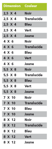 Conditionnement : 25 mètres, 100 mètres standard. 500 mètres sur demande.
