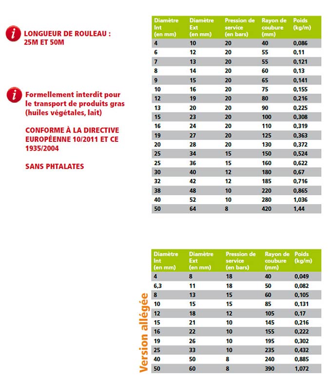 Utilisé pour le passage de produits/liquides alimentaires à l’exception de solutions alcooliques tirant de plus 15°.